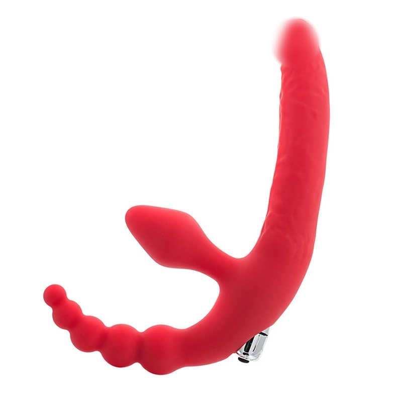 Безремневой страпон с анальным стимулятором "Black&Red" с вибрацией, красный